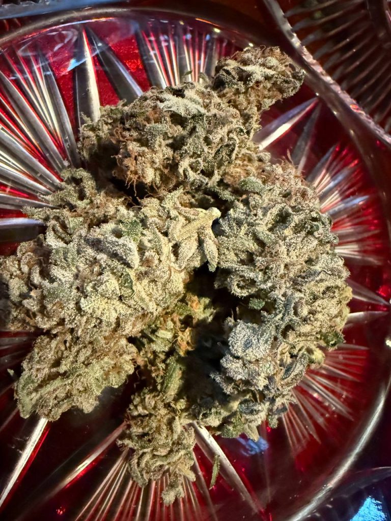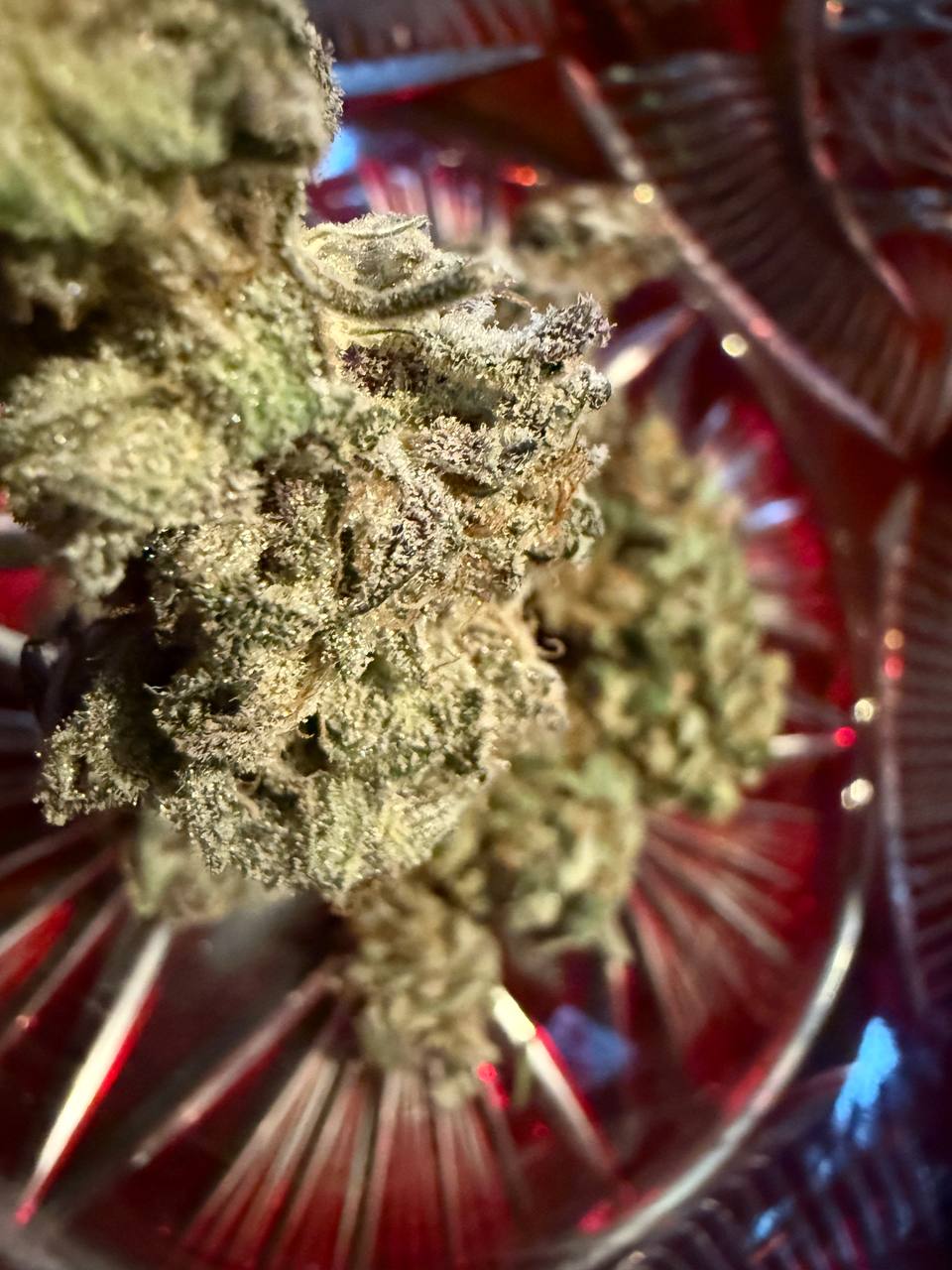 Darunter sehen wir ein Glas der White Widow nach dem Curing.